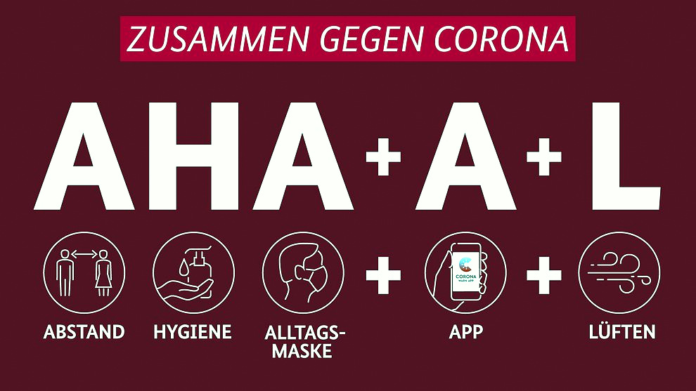 *AHA plus L* = Abstand / Hygiene / Atemmaske tragen plus regelmäßiges Lüften!