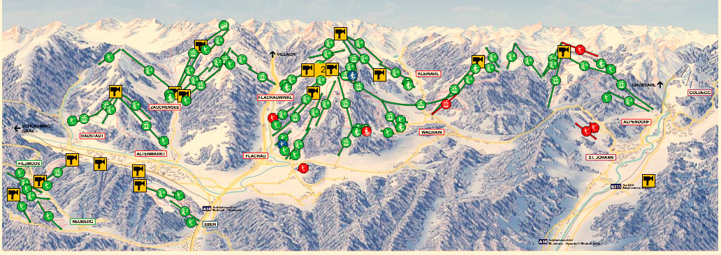 Der Einstieg in die Skigebiete Flachau / Wagrain / St Johann (Snow Space Salzburg)
