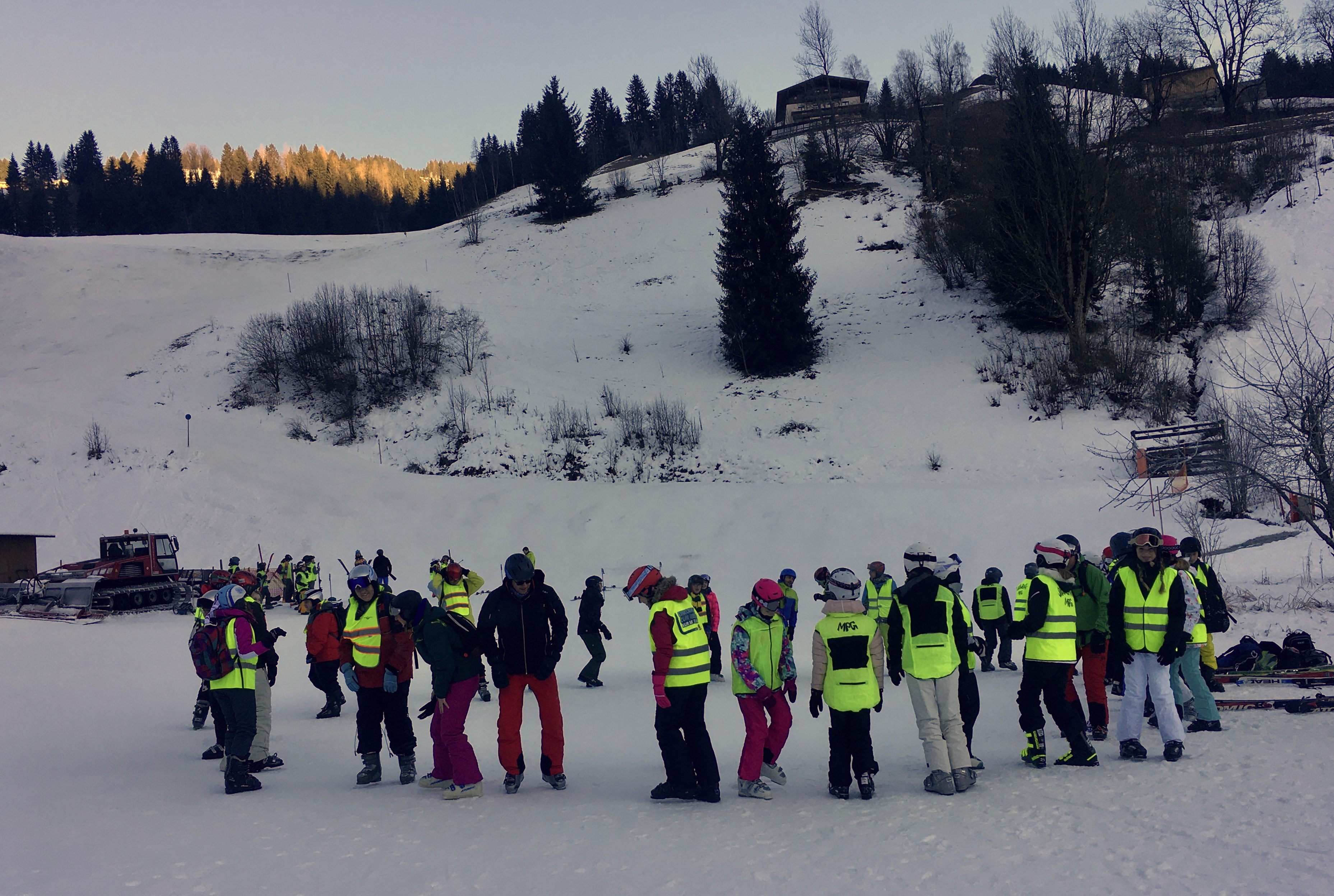 schon bei der 1. Anpassaktion (Schuhe und Skier) für ihre Klasse helfen